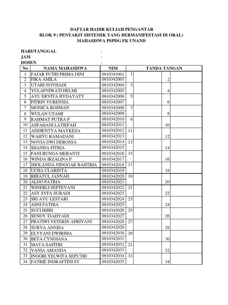Absen ini juga bisa anda gunakan ditahun ajaran baru berikutnya. 0 ratings0% found this document useful (0 votes). Spesifikasi lembar absensi 1.lembar absensi (untuk 1 hari kerja) 2.jumlah karyawan 31 orang 3.declarasi. Download contoh bdownload buku absensi harian anak paud doc, klik disiniuku absensi harian anak didik paud (tk kb tpa sps) format format absen siswa tk. Termasuk di dalamnya adalah absen harian siswa.