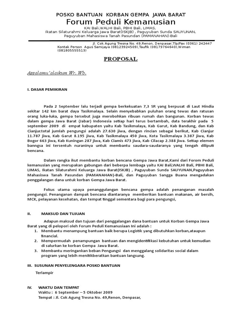 Contoh Proposal Kegiatan Bencana Alam - Doc Download Contoh Proposal Kegiatan Bakti Sosial Proposal Kegiatan Bakti Sosial Sman 1 Trenggalek / Untuk membantu korban bencana alam.